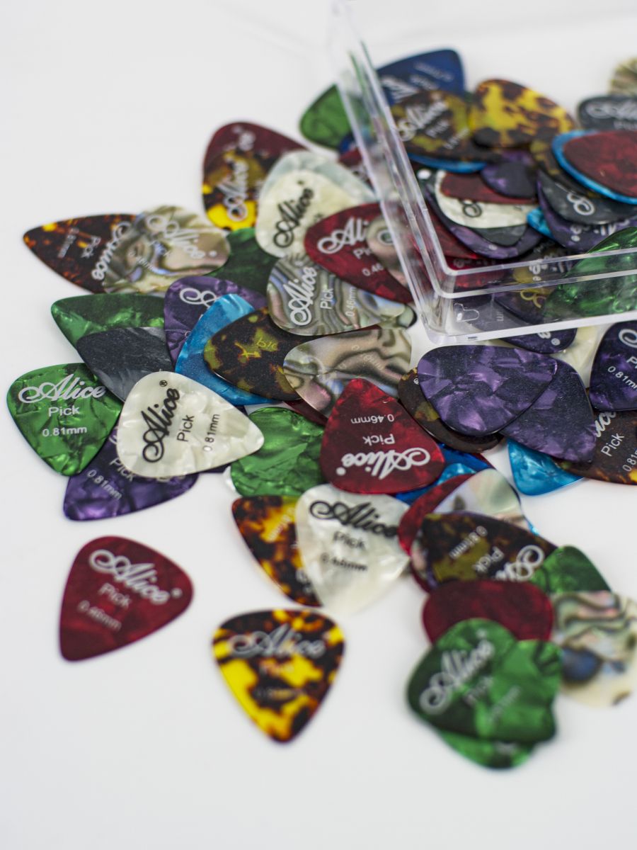Alice AP-100A - профессиональный набор медиаторов премиум-класса, созданный для музыкантов, ценящих качество и разнообразие в игре. Комплект включает 100 медиаторов различных толщин и расцветок, что делает его идеальным выбором как для начинающих, так и для опытных гитаристов.