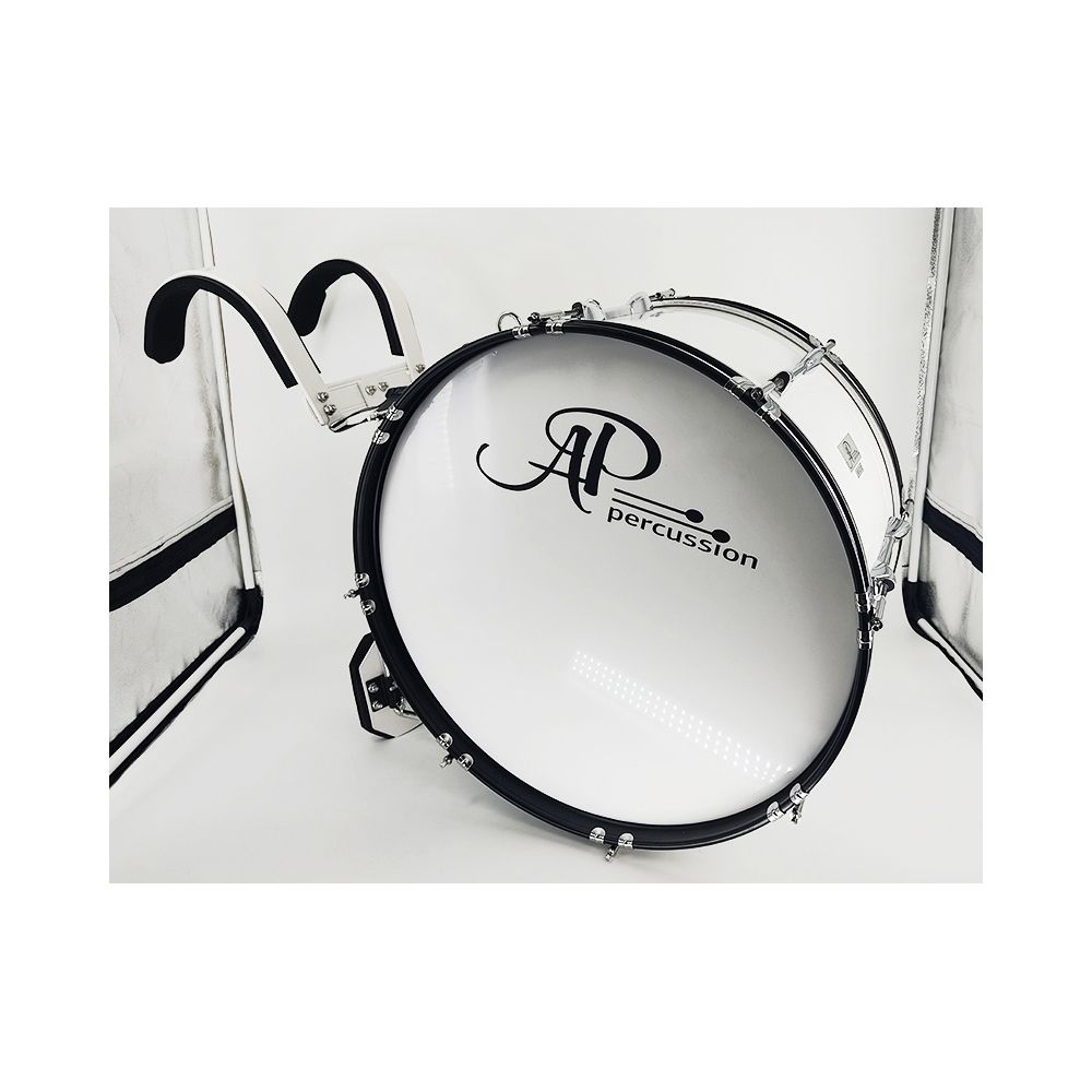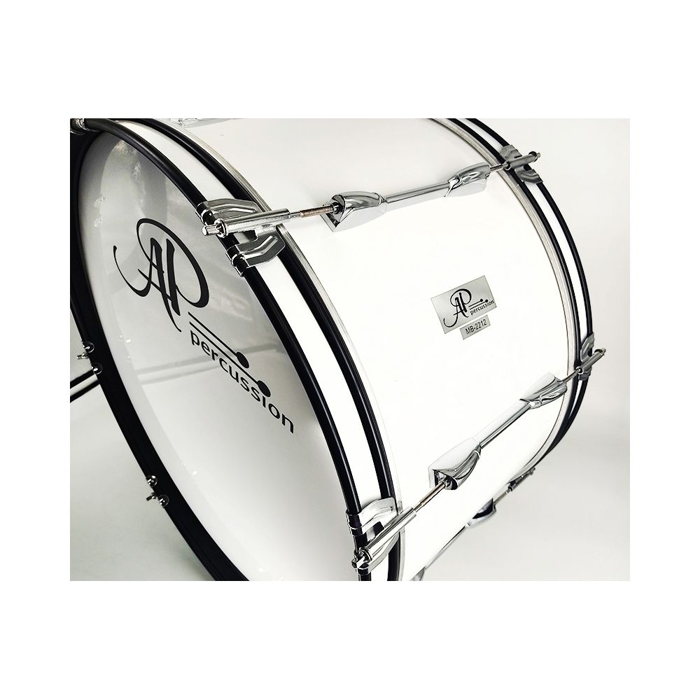 Большой маршевый барабан AP Percussion MB-2212 выполнен в белом цвете, который прекрасно дополняет черная фурнитура. Ободы изготовлены из прочной стали и покрыты черным цветом. Модель поставляется в комплекте с держателем и двумя колотушками. AP Percussion MB-2212 – отличный маршевый барабан по доступной цене.