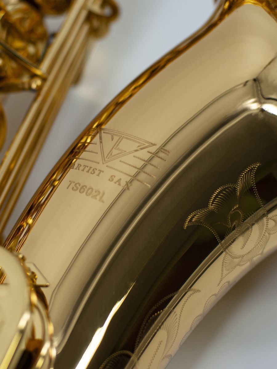 Саксофон Artist TS-602L – это изящество внешней отделки в сочетании с великолепным звучанием. В производстве саксофонов Artist воплощена уникальная технология изготовления клапанов флейтовой формы и варианты тянутых (drawn tone hole) или паяных (soldered tone hole) колодцев под ними, что значительно улучшает исполнение штрихов, ответ инструмента и обогащает тембр. Кнопки клапанов покрыты натуральным перламутром, а инкрустация раструба придает саксофону особую эффектность.