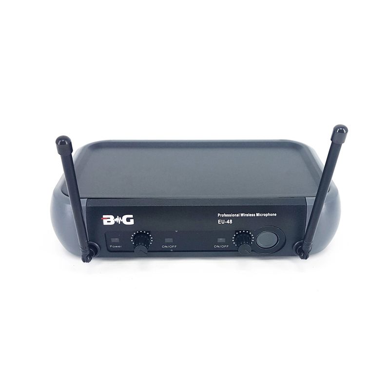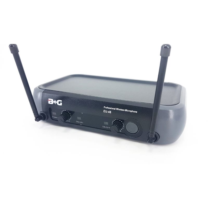 BG EU-48A – это качественная и доступная по цене вокальная радиосистема с двумя ручными микрофонами. Комплектация: 1. Приемник 2. Два ручных микрофона Приемник: – индикатор переключателя ON/OFF – регулятор громкости – RF-индикатор – переключатель ON/OFF – антенна приемника – разъем кабеля питания – балансный выходной разъем – выходной аудиоразъем – регулятор шумоподавителя Микрофон: – капсюль – индикатор низкого заряда – переключатель питания – отсек для элементов питания Модель выполнена в компактном и прочном корпусе. Микрофоны имеют качественное шумоподавление и четко передают звучание голоса. Радиосистема сочетает в себе звук профессионального качества с простой настройкой и понятным интерфейсом. Вокальная радиосистема BG EU-48A станет прекрасным вариантом как для вокалистов, так и для артистов разговорного жанра.