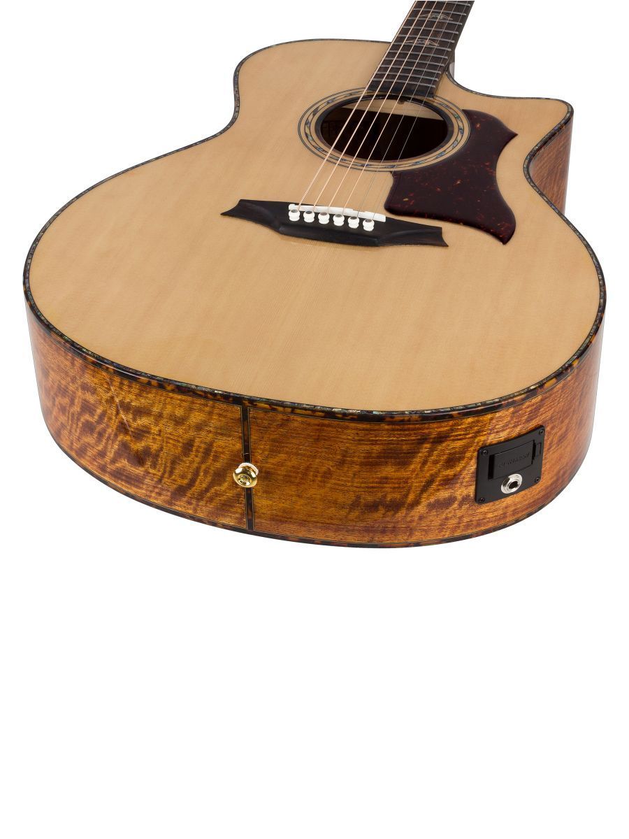 Серия: Danali Форма корпуса: Grand Auditorium Мензура: 648 мм (25 1/2") Ширина грифа у шеи: 43 мм (1 11/16") Верхняя дека: цельная ель Нижняя дека и обечайка: огненный мовингу Гриф / накладка грифа: махагони с двумя эбеновыми вставками / макассарский эбен Анкерный стержень: двухсторонний Лого на голове: гора Бромо, перламутр Оформление резонаторного отверстия: «Ковбойская веревка» Бридж: "Орлиное крыло", черное дерево Amara Оформление грифа и пятки: гора Бромо Лады: Jumbo, 20 ладов Верхний и нижний порожки: кость Колки: литье Mt. Bromo, позолоченные Электроника: Fishman “Sonitone” Отделка: лакированная В комплекте: чехол