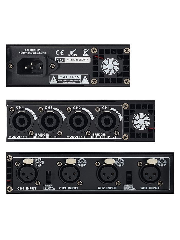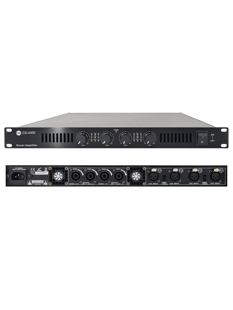 CMX Audio CS-4300 - четырехканальный усилитель мощности предназначен для профессионального аудиоприложения и стационарных звуковых систем. Он использует цифровую технологию класса D, которая помогает усилителю генерировать мощную выходную мощность, сохраняя при этом меньше тепла благодаря высокому КПД до 85%. Усилитель мощности разработан со специальным источником питания ШИМ для обеспечения его исключительной стабильности, меньшего шума и минимального нагрева. Его номинальная мощность составляет 4 × 300 Вт при 8 Ом. Усилитель поддерживает 8 Ом и 4 Ом, а универсальный режим стерео, параллельный и мостовой режимы позволяют ему хорошо работать с линейными динамиками, сабвуферами и профессиональными громкоговорителями. С полной защитой от перегрузки, высокой температуры и короткого замыкания этот усилитель работает в тяжелых рабочих условиях.
