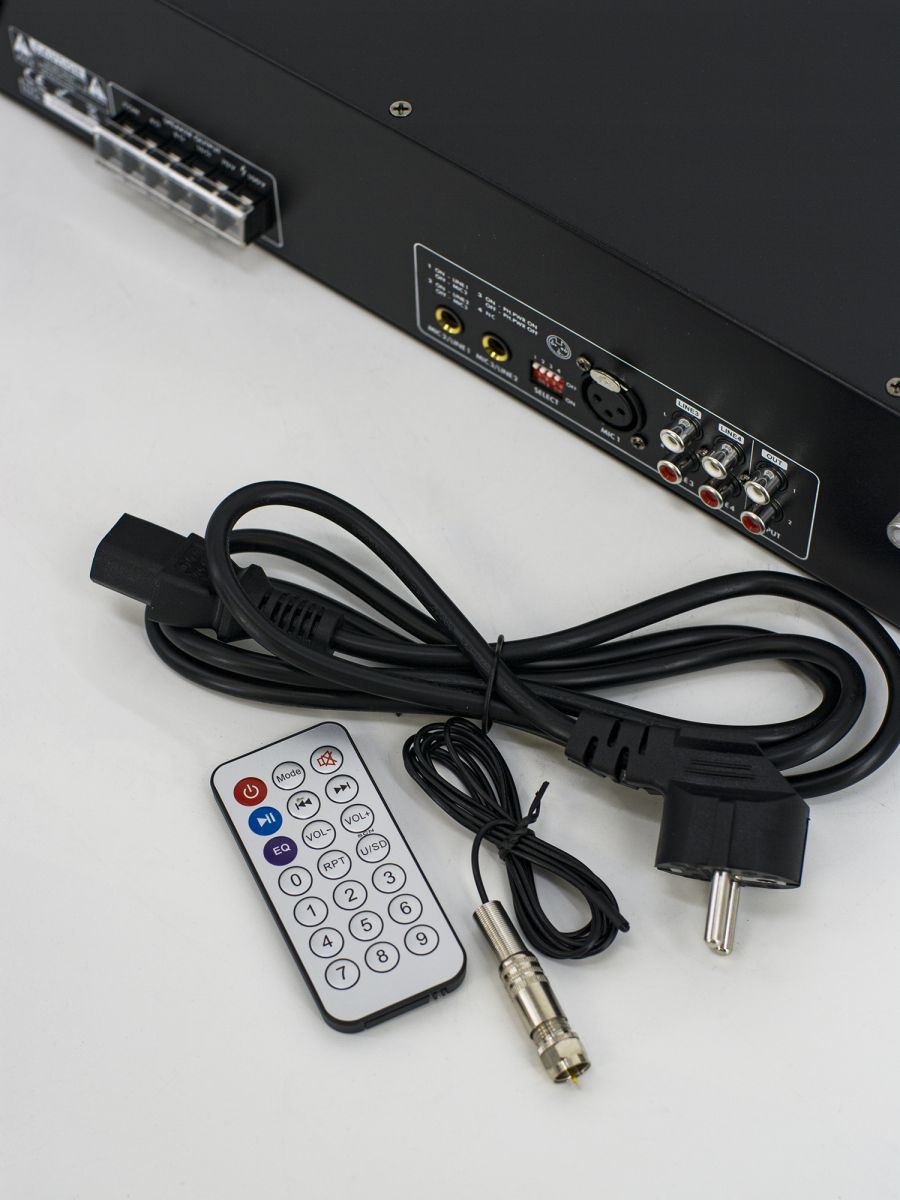 Микшер-усилитель 240 Вт, Mp3, SD, USB, BT, FM тюнер, 4 Mic, 3 Aux