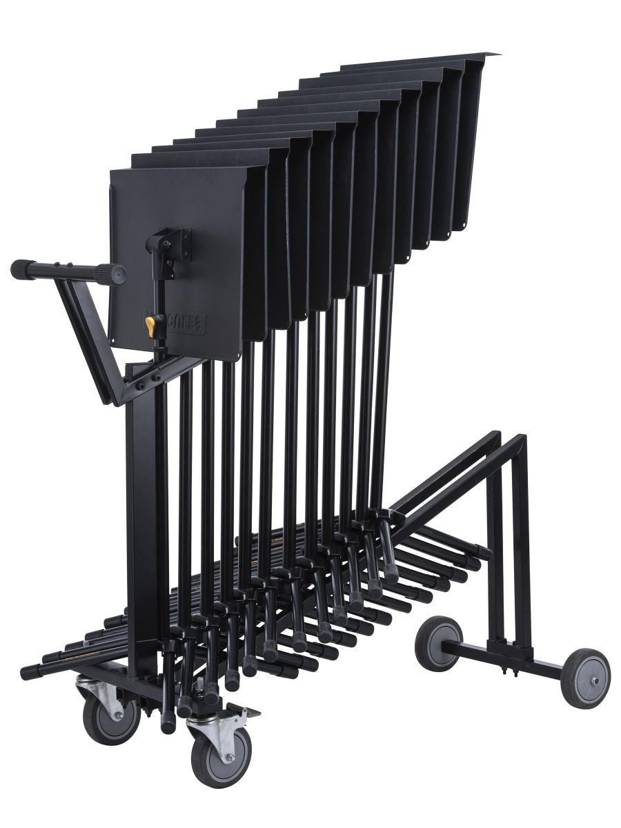 Тележка для пюпитров Hercules BSC800 вмещает до 12 оркестровых пюпитров BS200B. Особенности: – удобная ручка с резиновыми наконечниками; – бесшумный и легкий ход. Hercules BSC800 станет незаменимым помощником в следующих ситуациях: - Организация работы музыкальных коллективов - Транспортировка пюпитров между помещениями - Хранение большого количества пюпитров в компактном виде - Подготовка к концертам и репетициям - Работа музыкальных школ и консерваторий Тележка Hercules BSC800 идеальна для транспортировки и оптимизации хранения большого количества пюпитров Hercules BS200B.