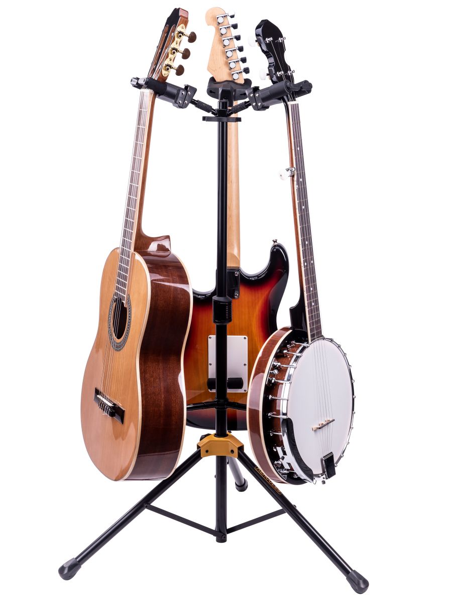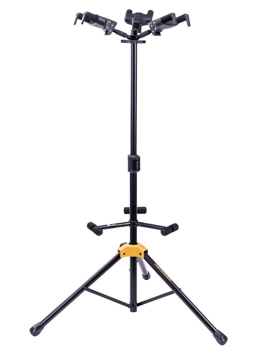 Hercules GS432B Plus – качественная гитарная стойка для размещения трех гитар одновременно. Усовершенствованная модель имеет складные кронштейны с автоматической системой захвата Auto Grip System. Механизм AGS реагирует на вес инструментов. Высота стойки мгновенно регулируется вручную. Качественный материал SFF защищает инструменты от повреждений во всех точках соприкосновения. Надежные кронштейны позволяют размещать на стойке гитары большого размера. Hercules GS432B Plus подходит для электрогитар, а также для классических и акустических моделей.