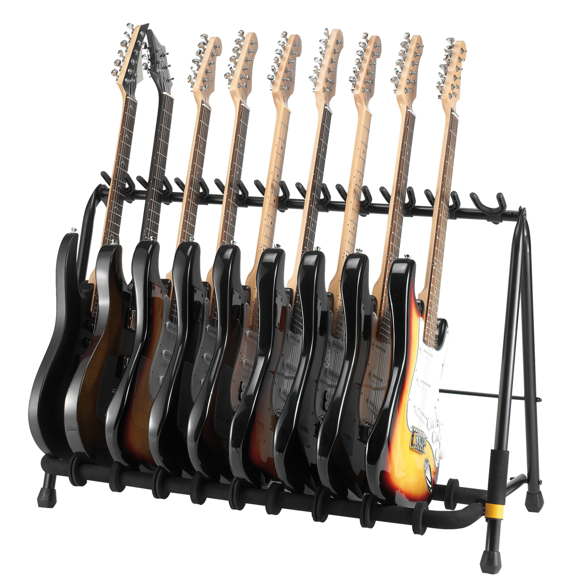 Стенд рассчитан на 5 гитар. Подходит для размещения акустических, электрических и бас гитар. Занимает мало места, легко разбирается и удобен в транспортировке. Специальное прорезиненное покрытие предотвращает от повреждений корпуса гитар. Hercules GS525B — это надежное решение для профессионального размещения гитар, сочетающее в себе функциональность и защиту инструментов.
