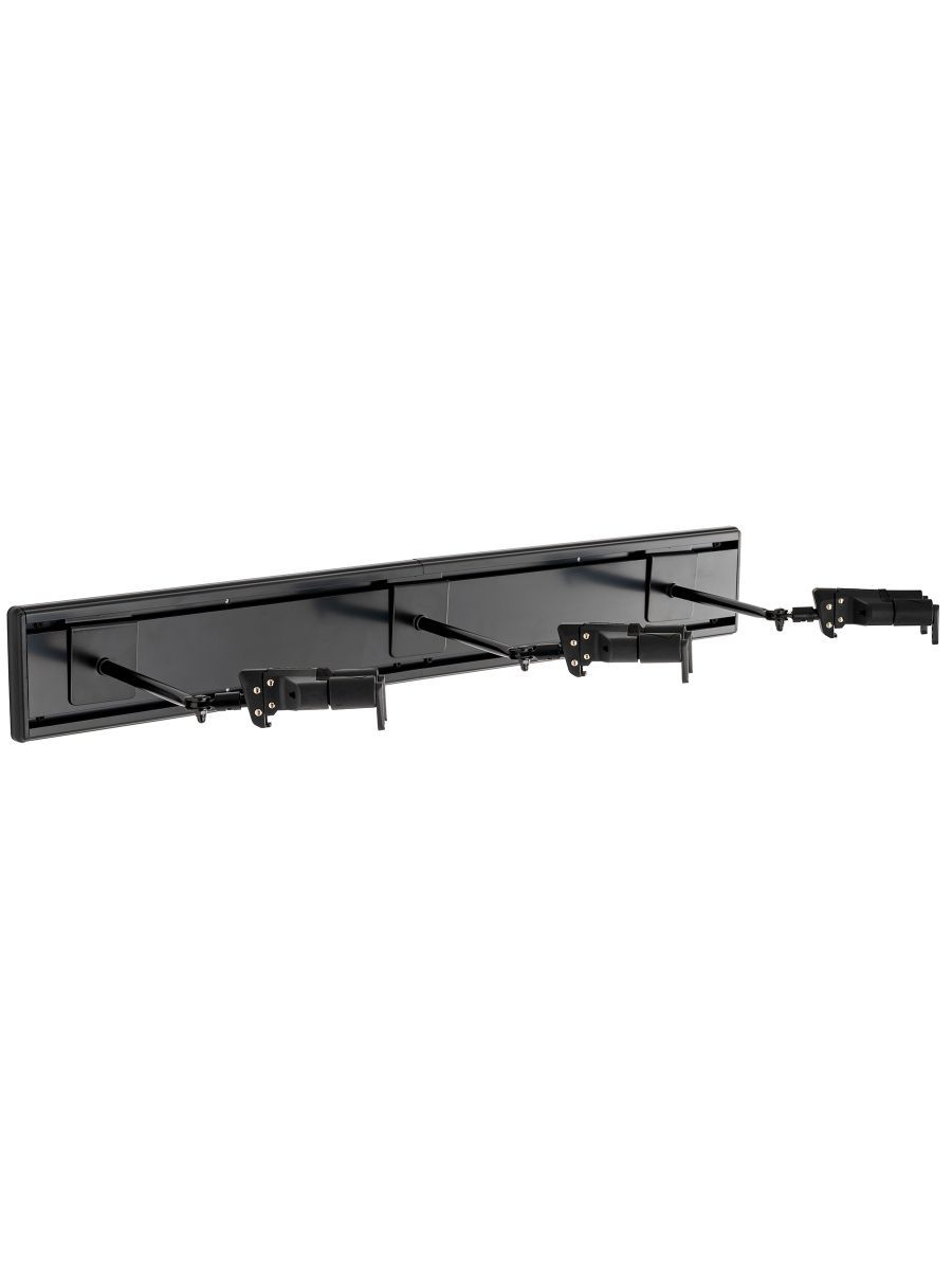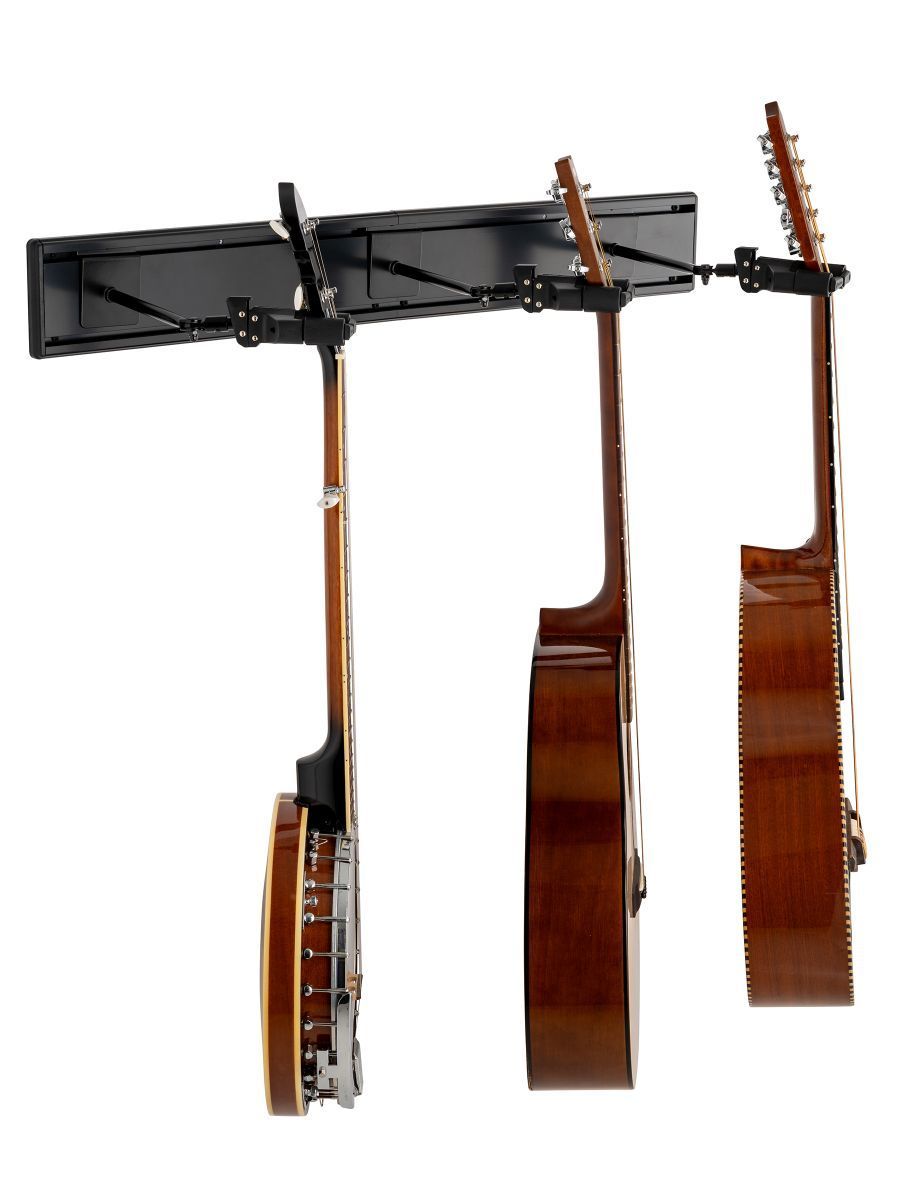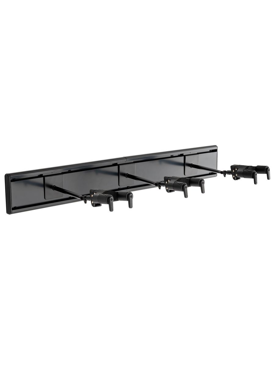 Hercules GSP403SB - настенная панель с крючками для трех гитар разработана для музыкантов, которым требуется надежное и удобное решение для хранения гитар. GSP403SB оснащена тремя поворотными крючками AGS Yoke с автоповоротом, которые надежно фиксируют инструменты. Крючки регулируются по углу наклона и подходят для грифа шириной 40–52 мм. Конструкция панели позволяет расширять систему хранения, а регулируемое расстояние между крючками делает её подходящей для инструментов разных размеров, обеспечивая оптимальную защиту и демонстрацию ваших гитар. В комплект входят две настенные панели и три настенных крючка GSP40SB Plus с длинными ручками и адаптерами N.I.N.A. Пользователи могут легко добавлять новые наборы по мере роста своей коллекции гитар, комбинируя их с другими.