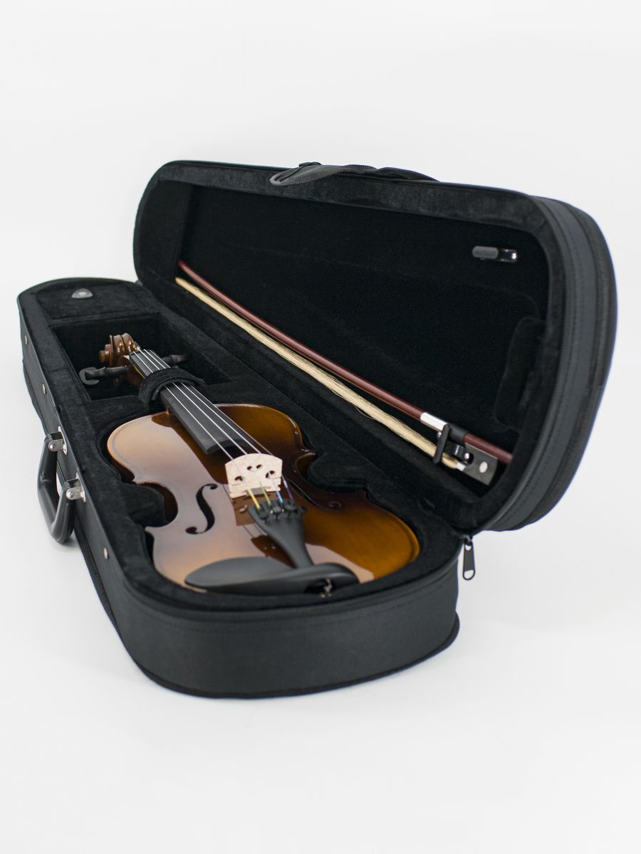 HMI HV-100HA 1/4 Скрипка Student 1/4, в кейсе, смычок, канифоль, верхняя дека - ель, нижняя дека, обечайки - клен, гриф- клен, лак