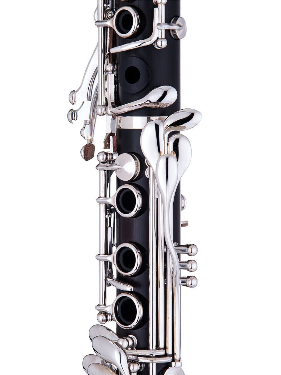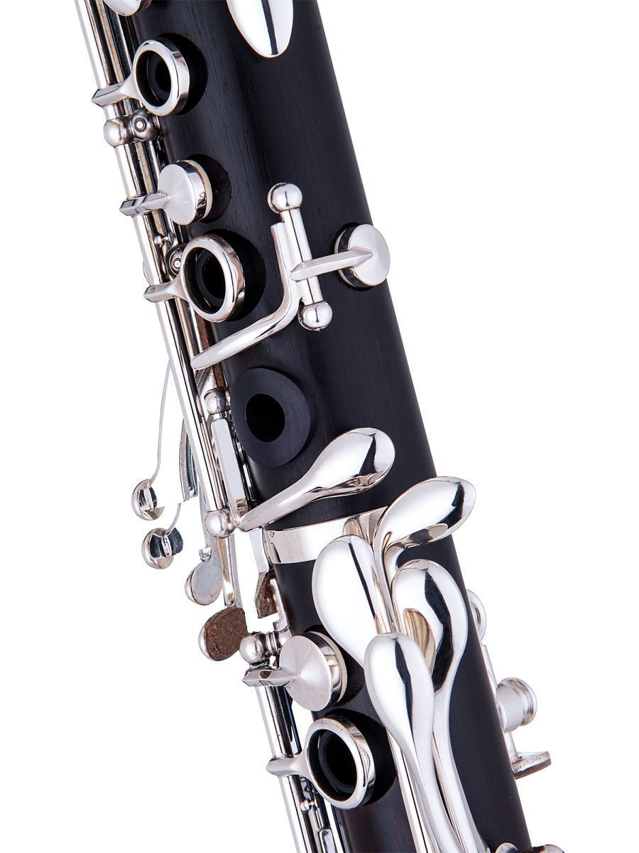 Строй: Bb Корпус: дерево Grenadilla Клапаны: нейзильбер, посеребренные Система: 18 клапанов, 6 колец Полицилиндрическая мензура: 14,65 мм Эргономичный октавный клапан Эргономичный низкий F/C клапан Раструб без металического кольца Упор для большого пальца: регулируемый Бочонок: 65 мм Пружины из голубой стали В комплекте: деревянный кейс с сумкой Дополнительно: приподнятое С/G тоновое отверстие