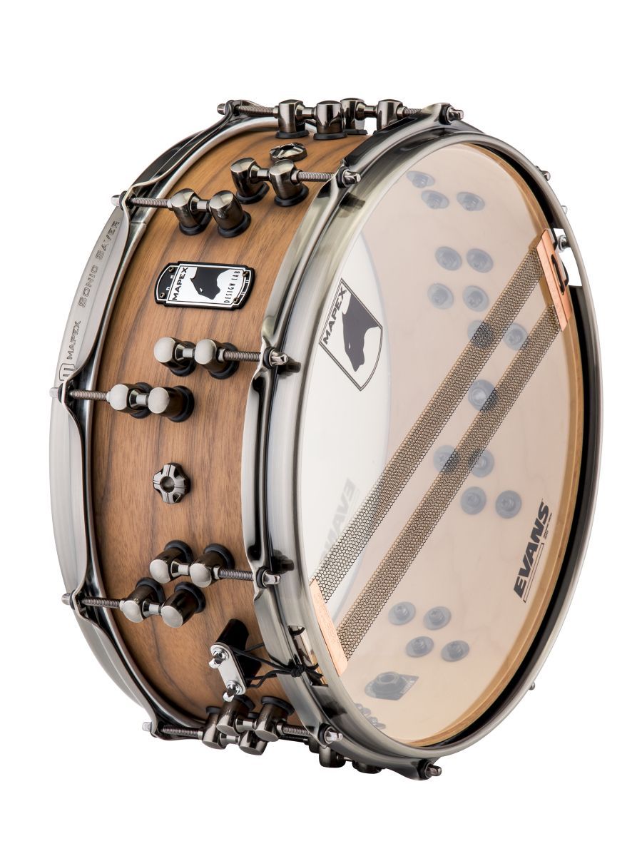 Mapex BPDLMW4550LNW представляет собой малый барабан профессионального уровня серии Black Panther Design Lab Craig Blundell/Machine. Модель изготовлена из 6-слойного гибрида клена и грецкого ореха, что обеспечивает прогрессивное и динамичное звучание. Опорная кромка SONIClear™ позволяет пластику располагаться более ровно, а также плотно прилегать к корпусу барабана. Внутренний выступ и дополнительный вес ободов Sonic Saver помогают сфокусировать звучание барабанов. Выступы расположены вниз и создают более винтажный тон. Лаги Master Tune расположены в шахматном порядке. Эксклюзивный механизм с нажимом Design Lab установлен на каждом лаге. Натуральное матовое покрытие SAS подчеркивает красоту древесины, а также позволяет корпусу хорошо вибрировать.