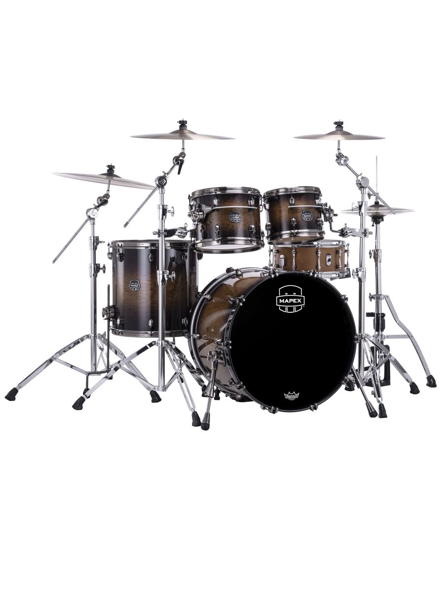 Mapex SE529XMBMZ представляет собой впечатляющий набор из четырех барабанов премиум-класса, созданный для истинных ценителей качественного звучания. Серия Saturn Evo воплощает в себе передовые технологии и инновационные решения в области производства ударных инструментов. Гибридный корпус из клена и ореха обеспечивает уникальное сочетание теплого, насыщенного звучания с отличной резонансной характеристикой. Такая комбинация материалов создает полноценный округлый звук, яркую универсальную тональность, открытое чистое звучание, отличный контроль над сустейном. Экзотическое цветовое решение Exotic Night Forest Burst создает неповторимый внешний вид установки. Матовая черная фурнитура придает комплекту элегантный и современный облик. Набор барабанов Mapex SE529XMBMZ станет отличным выбором для тех, кто ценит превосходное звучание, надежность и современный дизайн в одном комплекте.