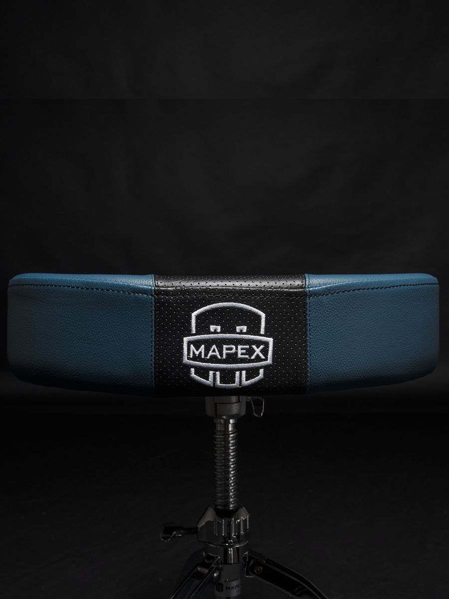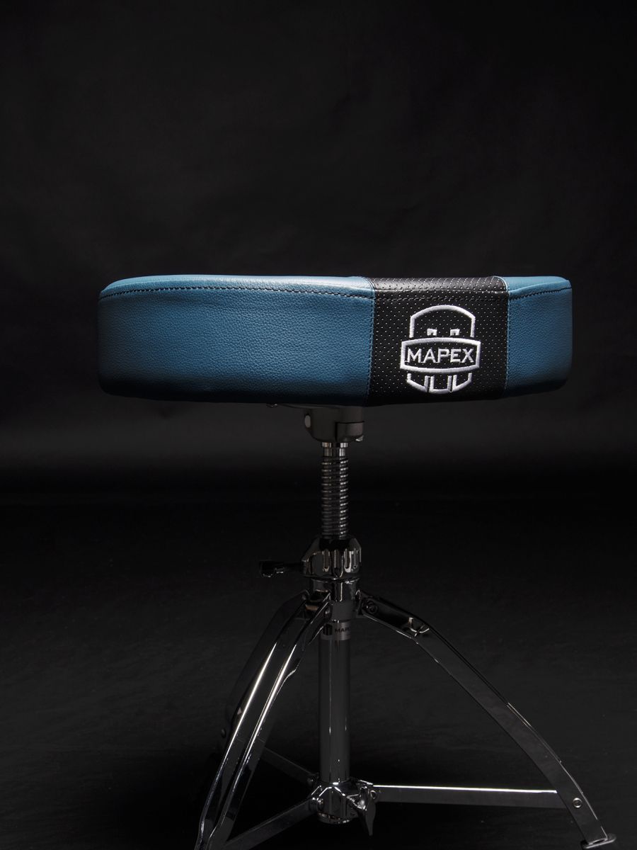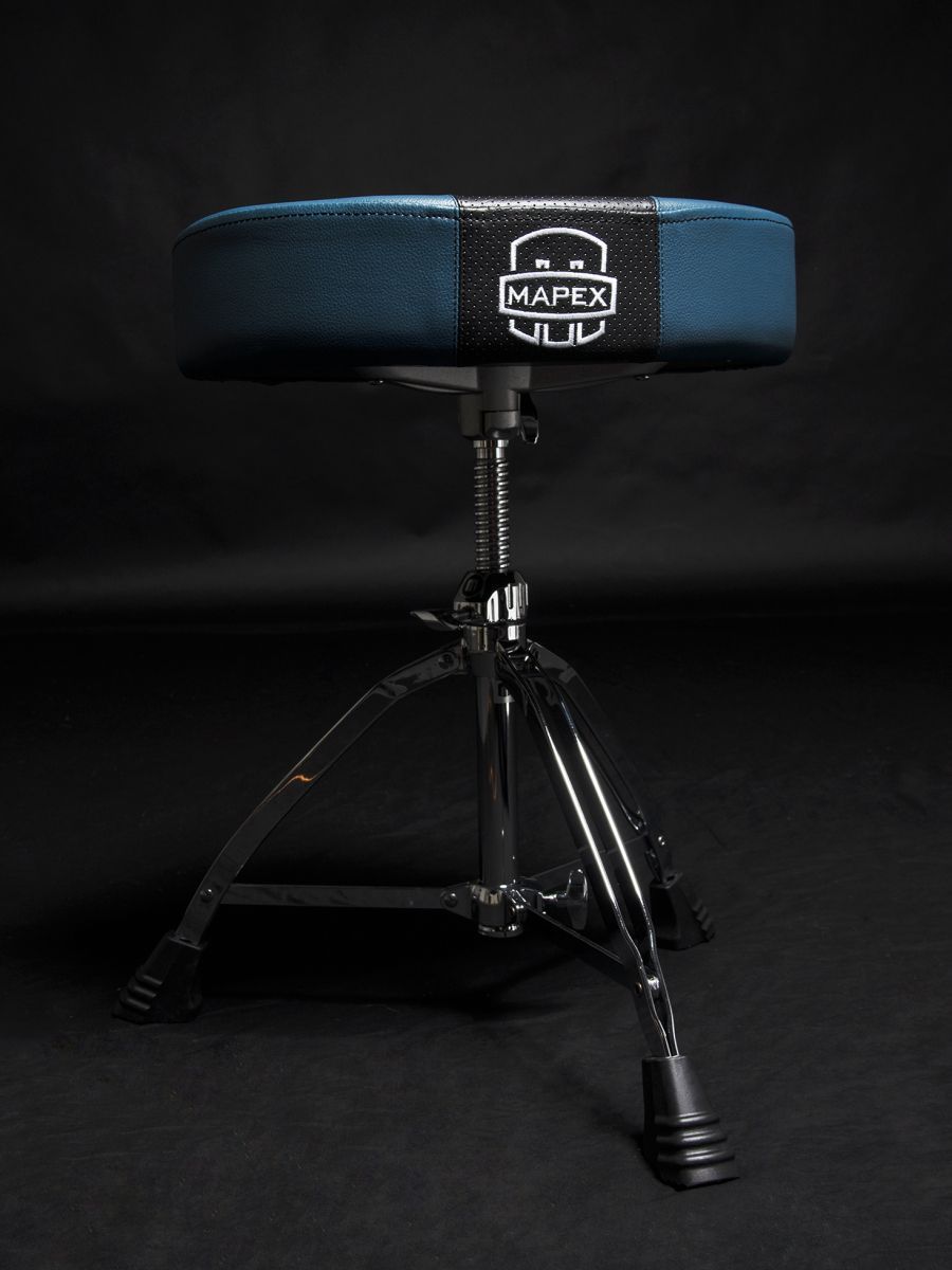Mapex T855BL Стул с мото-сиденьем из дышащего винила, цвет сиденья: черно-синий, ось с резьбой, двойные ножки