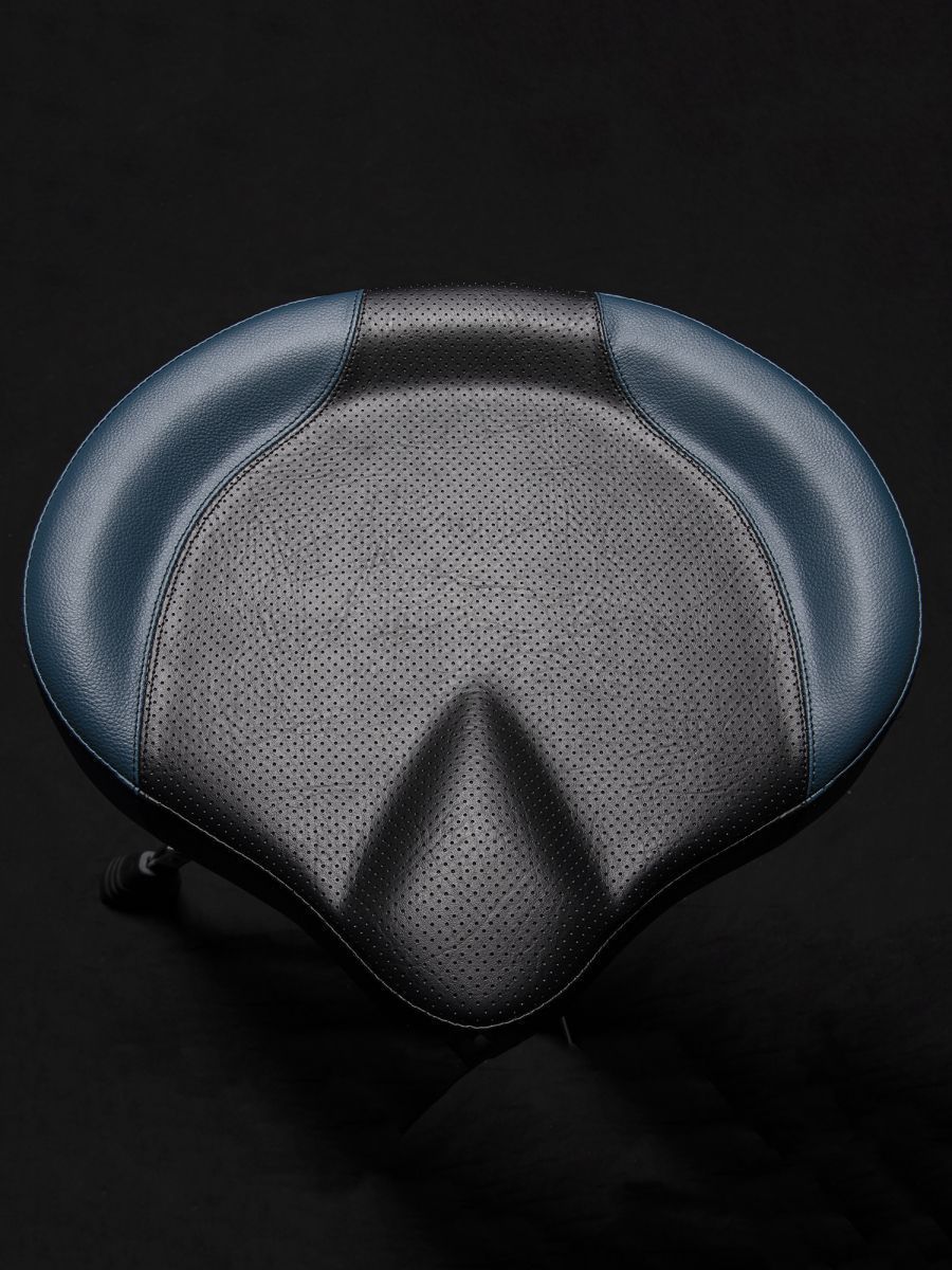 Сиденье: 17" х 4", мото-сиденье, из дышащего винила Высота: 19" х 25" Ось: с резьбой Ножки: двойные Цвет сиденья: черно-синий