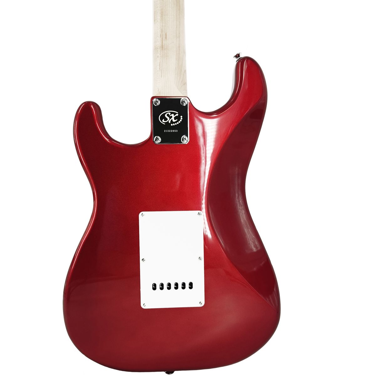 SX SE1-SK/CAR Набор: электрогитара, корпус: липа, гриф: клен, накладка: палисандр, анкер, 22 лада, звукосниматели 3 Single Coil, контроллеры: 1 громкость, 2 тона, 5 позиционный переключатель, цвет: Candy Apple Red, комбо 10Вт, кабель, ремень, тюнер, 6 медиаторов, чехол