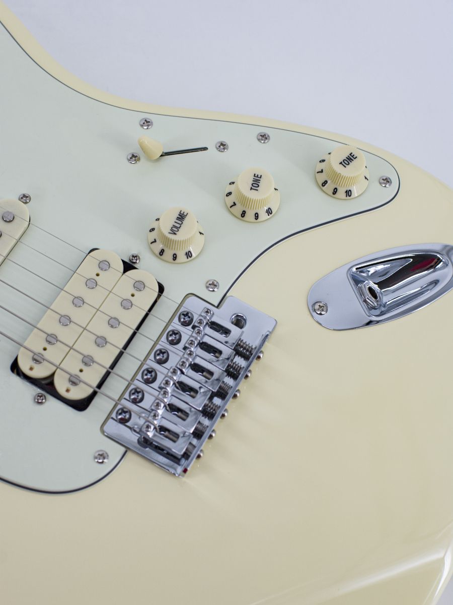 Тип корпуса: стратокастер Мензура: 648 мм Ширина верхнего порожка: 42 мм Материал корпуса: липа Гриф / накладка грифа: отборный канадский клён с палисандровой вставкой / палисандр Лады: 21 Звукосниматели: H-S-S Регуляторы: громкость – 1, тон – 2, 5-позиционный переключатель Цвет корпуса: Vintage White Страна-производитель: Китай