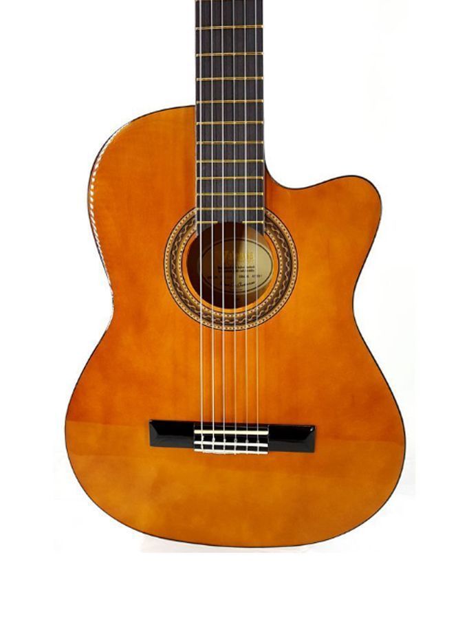 Valencia VC104C – это качественная полноразмерная классическая гитара с вырезом. Инструмент имеет универсальный характер звучания, поэтому подходит для различных музыкальных жанров и стилей игры. Корпус гитары изготовлен из липы, которая обладает усиленными резонансными особенностями. Гриф из нато имеет удобную форму и оптимальную ширину. Накладка выполнена из клена. Вырез эргономичной формы дает удобный доступ к верхним ладам. Натуральное покрытие Valencia VC104C положительно влияет не только на внешний вид инструмента, но и на его звуковые характеристики. Надежная колковая механика прекрасно держит строй и обеспечивает легкость при настройке. Нейлоновые струны, установленные на комфортной для игры высоте, придают звучанию особую мягкость. Стильная, удобная и доступная по цене гитара Valencia VC104C – идеальный вариант для начинающих музыкантов.