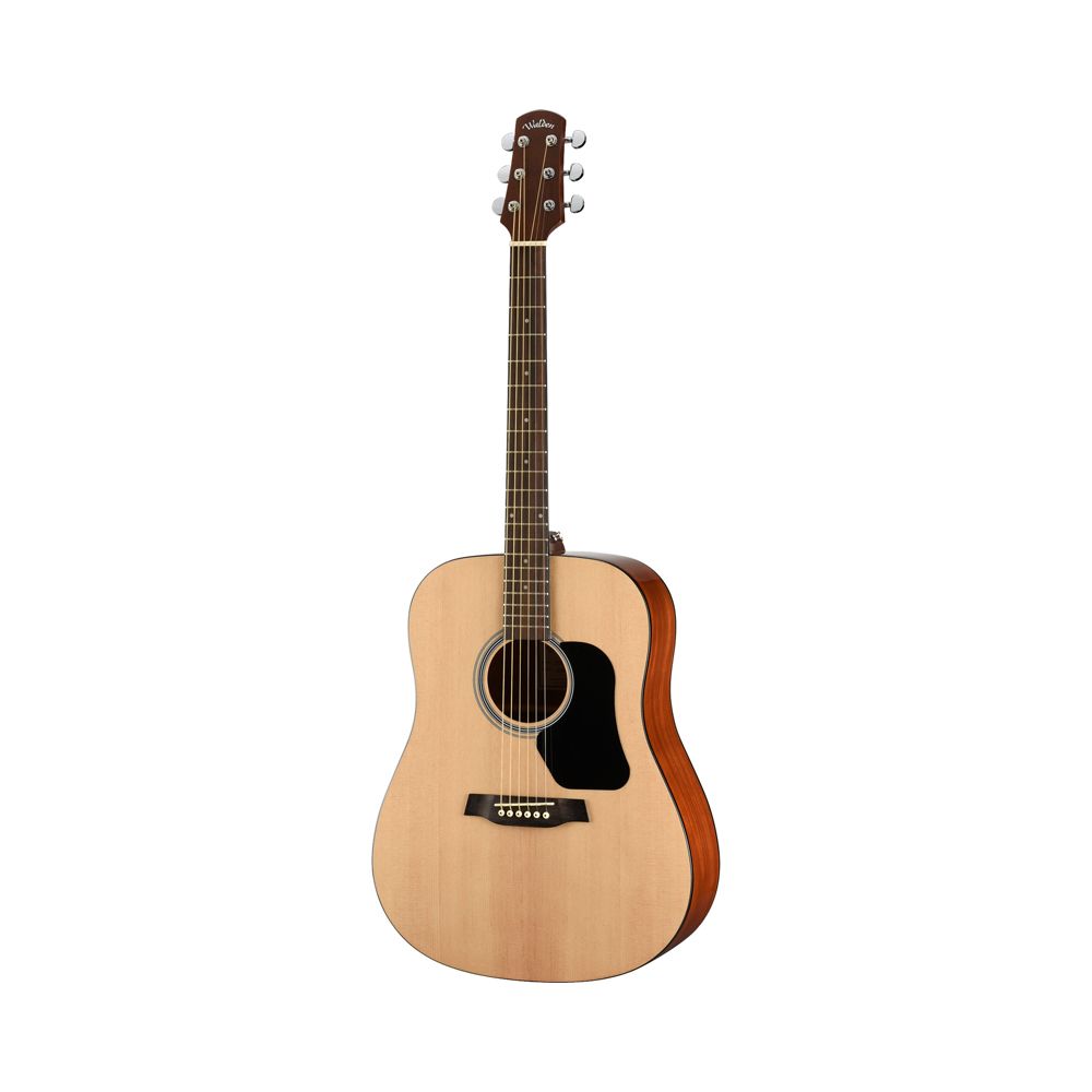 Walden D350W – это качественная недорогая акустическая гитара, отличающаяся достойным звучанием и привлекательным дизайном. Форма корпуса модели – дредноут. Х-образная форма деки обеспечивает яркое, насыщенное и богатое звучание. Верхняя дека выполнена из ели, которая отличается устойчивостью к климатическим изменениям. Нижняя дека и обечайка изготовлены из махагони, материал накладки – палисандр. Гриф оснащен анкерным стержнем с двусторонним креплением. Армирование грифа стекловолокном обеспечивает особую прочность и стабильность. Литые хромированные колки прекрасно держат строй. Гитара выполнена в натуральном цвете и покрыта лаком. Модель поставляется в комплекте с прочным чехлом. Акустическая гитара Walden D350W станет прекрасным вариантом как для начинающих музыкантов, так и для более опытных исполнителей.